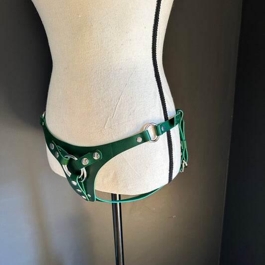 Handcrafted in the USA, these harnesses feature reinforced hardware, precision-cut edges, and multiple attachment points, allowing for aesthetic wear, body support, or bondage play. Whether worn as a statement piece or functional restraint, our harnesses elevate your experience with premium craftsmanship and timeless design.
